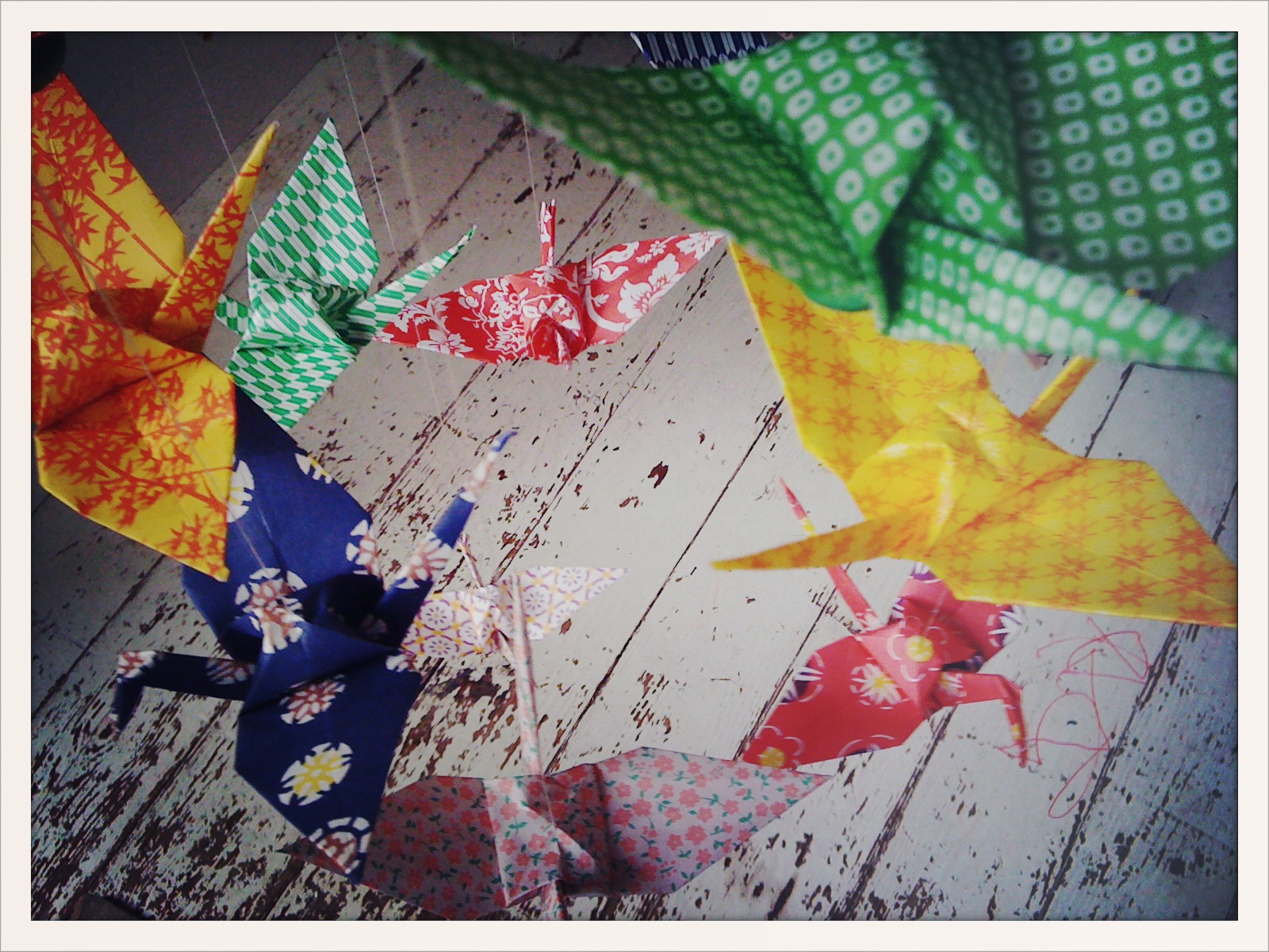 Kraanvogels voor de mobiel kreeg ik kado van Ingrid